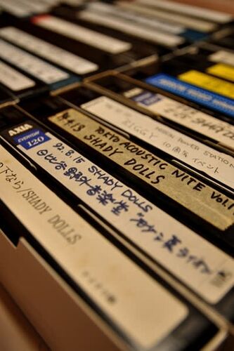 うはー、そうだ、あったんだ。 SHADY DOLLS時代のライブのビデオがありました。 参加して最初の“砂漠のライオン”ツアーの、日比谷音楽堂でのライブ。92年8月15日とありますので、僕、23歳の時ですねえ。 プロ一年生の時のライブです。 こえ…