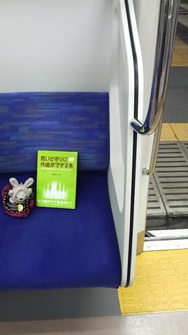 お次は、「ケンsanの本とぅさくま、見掛けなぃなぁ…と思ったら、2人(ぃゃ、1冊と1匹かwww)で、電車に乗って、仲良く出掛けたみたぃですΣ(-∀-;)」という。