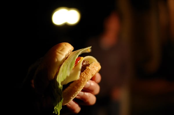 炭火焼きの、焼きたての、ハンバーガー。バンズもうっすらと焦げが付いていて、まさに絶品。こんなに美味しいハンバーガーは、めったに食べられるものではありませんですよ、奥さん(・・・寿司(笑)?)。